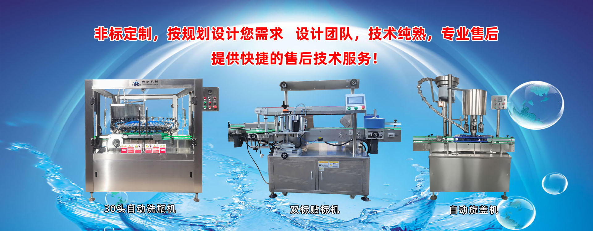 青州市惠聯(lián)灌裝機(jī)械有限公司是一家集生產(chǎn)研發(fā)、銷(xiāo)售、服務(wù)于一體的液體灌裝成套設(shè)備生產(chǎn)企業(yè),可根據(jù)廠家要求設(shè)計(jì)合理液體灌裝生產(chǎn)線,為用戶提供技術(shù)咨詢、設(shè)計(jì)工藝、場(chǎng)區(qū)平面布置、工藝改造、設(shè)備安裝調(diào)試等完善服務(wù)。 公司生產(chǎn)制造各種類(lèi)型液體灌裝機(jī)、過(guò)濾機(jī),水處理設(shè)備及液體灌裝成套設(shè)備。主要產(chǎn)品有:白酒、葡萄酒、黃酒等酒水灌裝機(jī)、食用油、機(jī)油、潤(rùn)滑油等油類(lèi)灌裝機(jī)、醬油醋、老抽、生抽等調(diào)味品灌裝機(jī)、防凍液、玻璃水灌裝機(jī)、酒精、84消毒液灌裝機(jī)、車(chē)用尿素灌裝機(jī)、口服液灌裝機(jī)、洗滌劑灌裝機(jī)等多種液體、膏體灌裝設(shè)備,全自動(dòng)/半自動(dòng)灌裝機(jī)型號(hào)多,規(guī)格全,洗瓶機(jī)、瓶子封口機(jī)、打塞機(jī)、熱縮機(jī)、瓶子烘干機(jī)、貼標(biāo)機(jī)、噴碼機(jī)、輸送線、裝箱機(jī)、水處理設(shè)備等全套生產(chǎn)線相關(guān)配套設(shè)備齊全,自產(chǎn)自銷(xiāo),一站式購(gòu)齊,售后無(wú)憂。